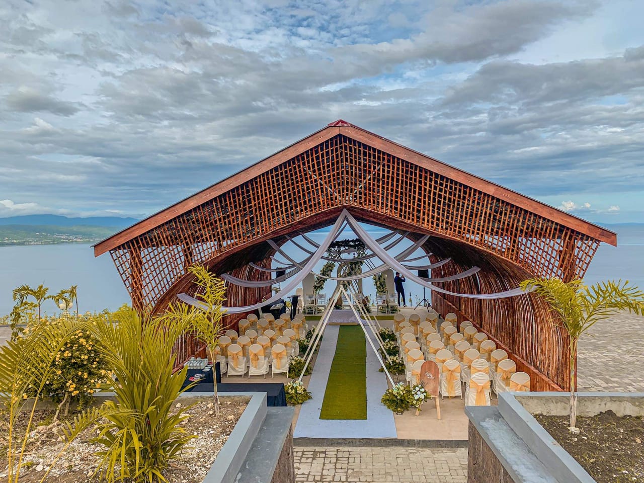 Breathtaking views and lavish gardens paint the background as weddings take on a spectacular stage at Estrella hotel luwuk.